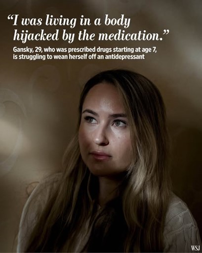 En av personerna som berättade sin historia i WSJ (Gansky 29 år), sade: ”årtionden av medicinering … ’ändrade min hjärna’. Jag känner mig som om jag är den verkliga långtidsstudien som läkemedelsbolagen har försummat att göra … Jag är det verkliga försöksdjuret.”
